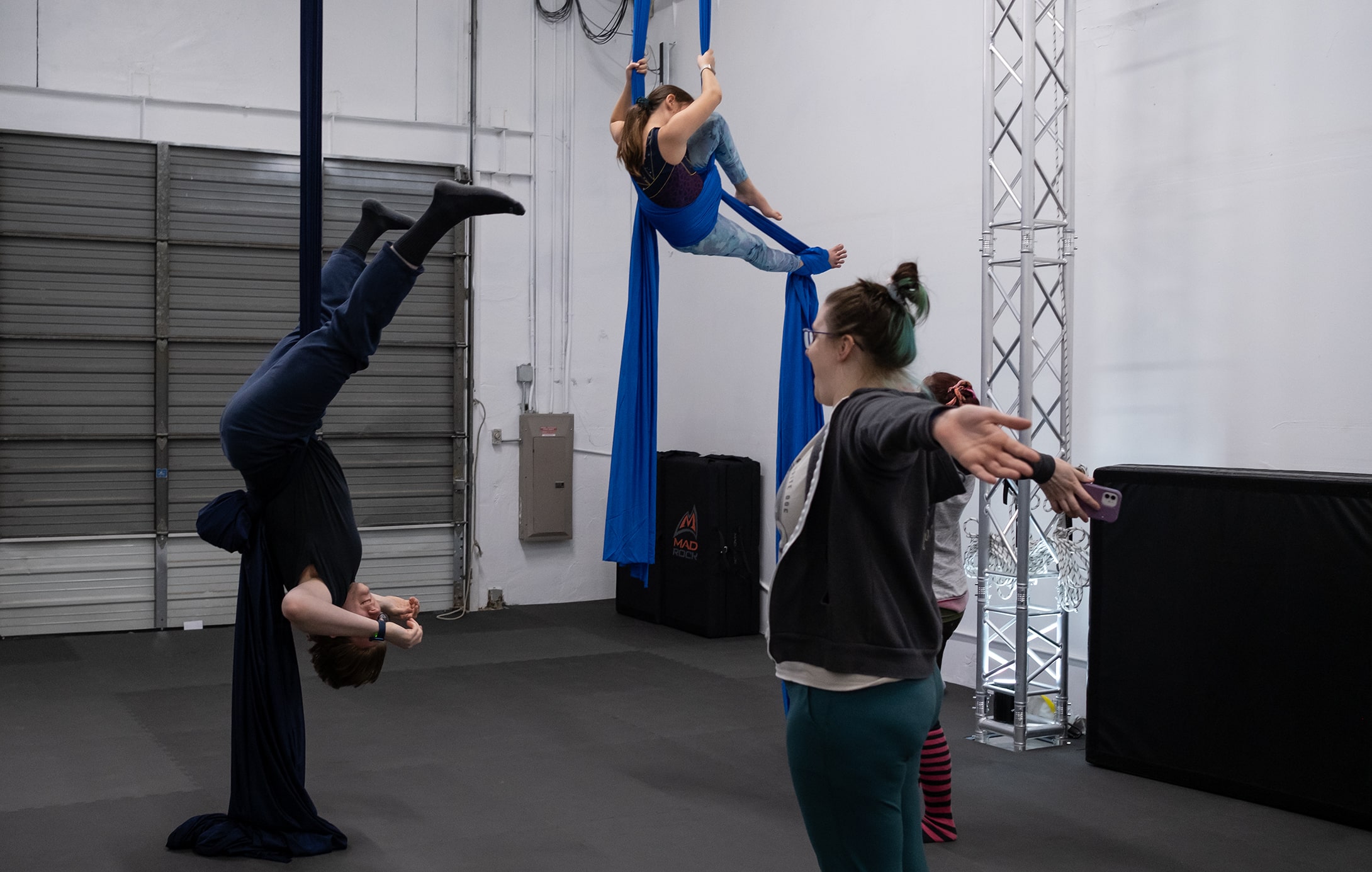 As aerial open gym is a chance for students to work on what they learned in class it is currently only open to current students or those 18+ with past experience and staff permission in particular circumstances.
